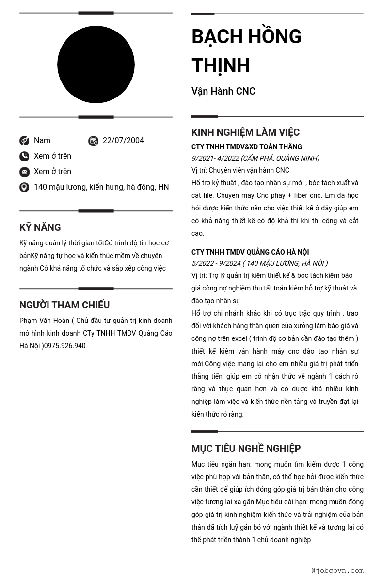CV Ứng Tuyển Thợ thiết kế 2D