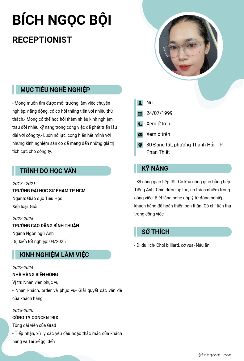 Chi tiết trong CV