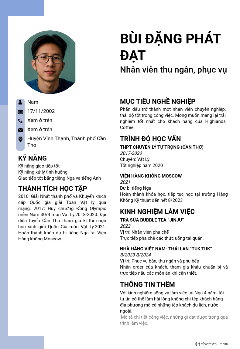 Chi tiết trong CV