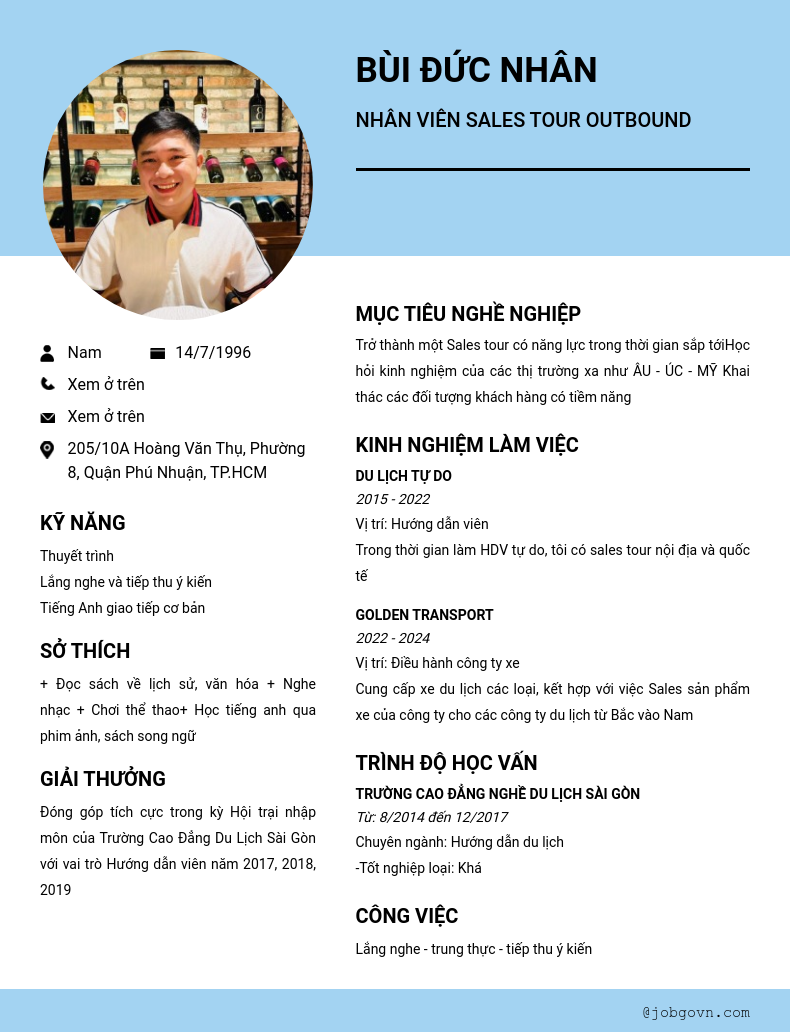 NHÂN VIÊN SALES TOUR OUTBOUND
