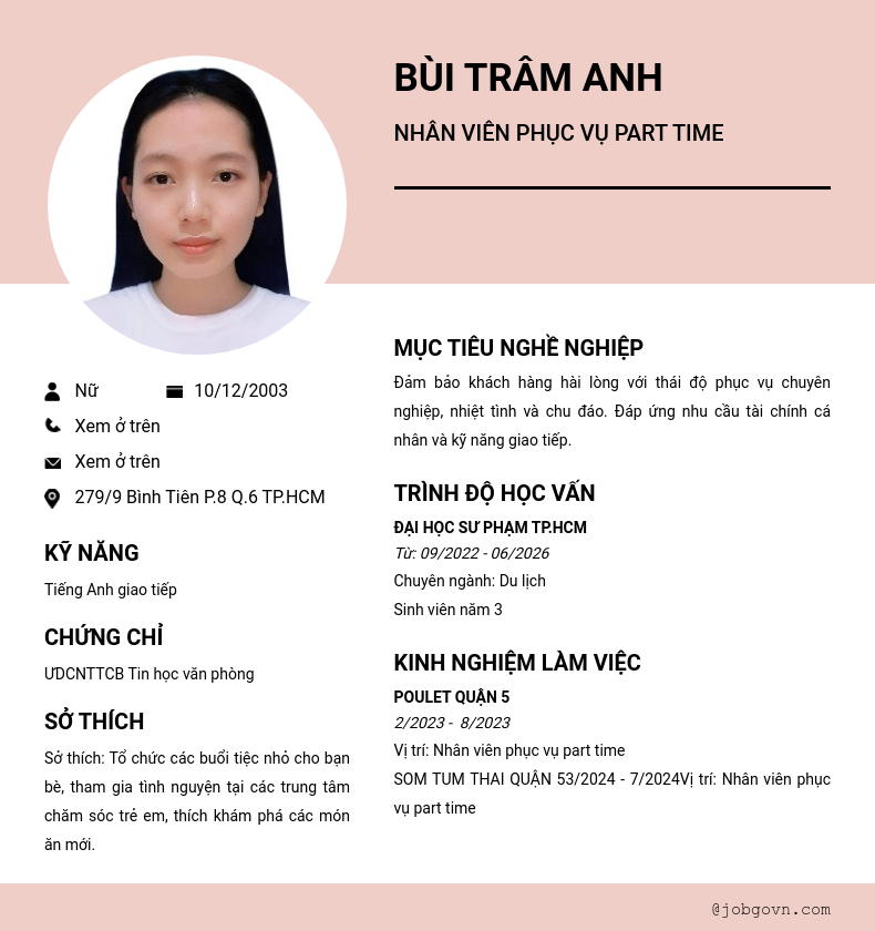 Nhân viên phục vụ part time