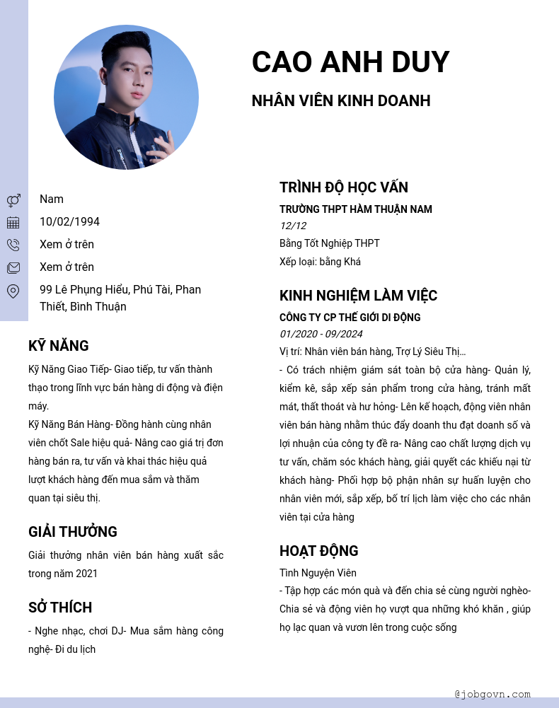 Chi tiết trong CV