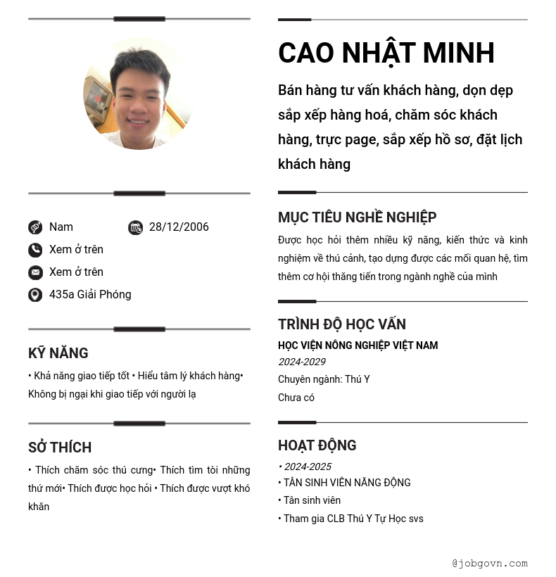 Bán hàng tư vấn khách hàng, dọn dẹp sắp xếp hàng hoá, chăm sóc khách hàng, trực page, sắp xếp hồ sơ, đặt lịch khách hàng