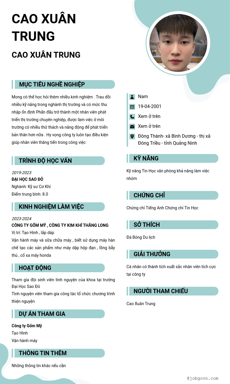 Chi tiết trong CV