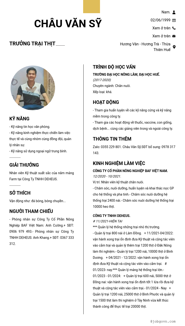 Chi tiết trong CV