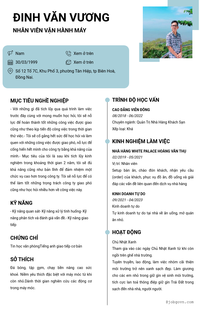 Chi tiết trong CV
