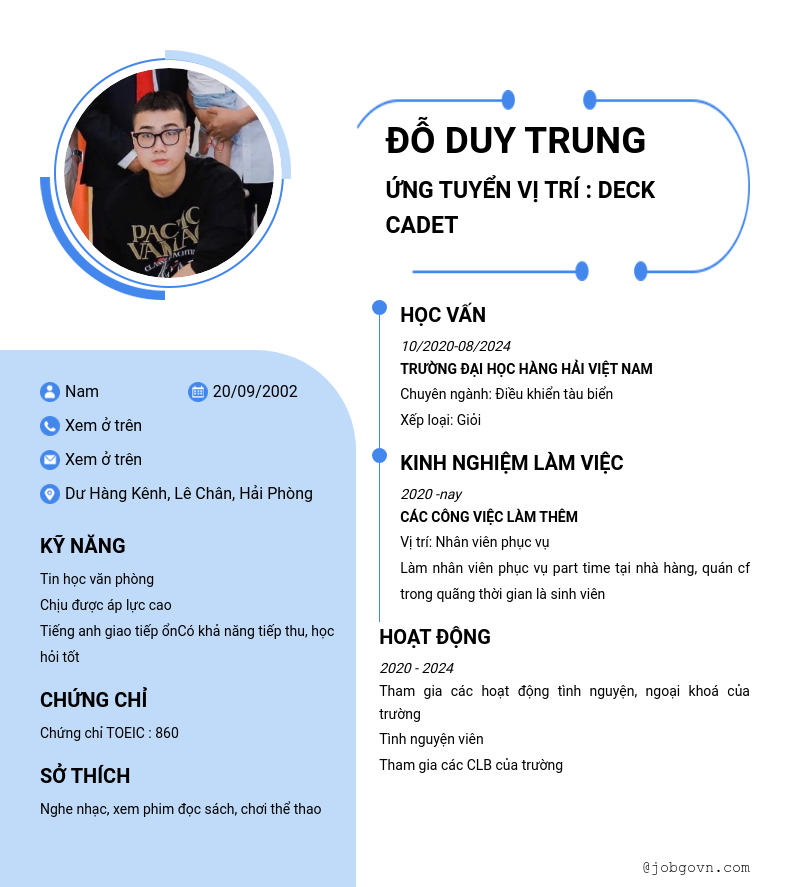 ứng tuyển vị trí : deck cadet