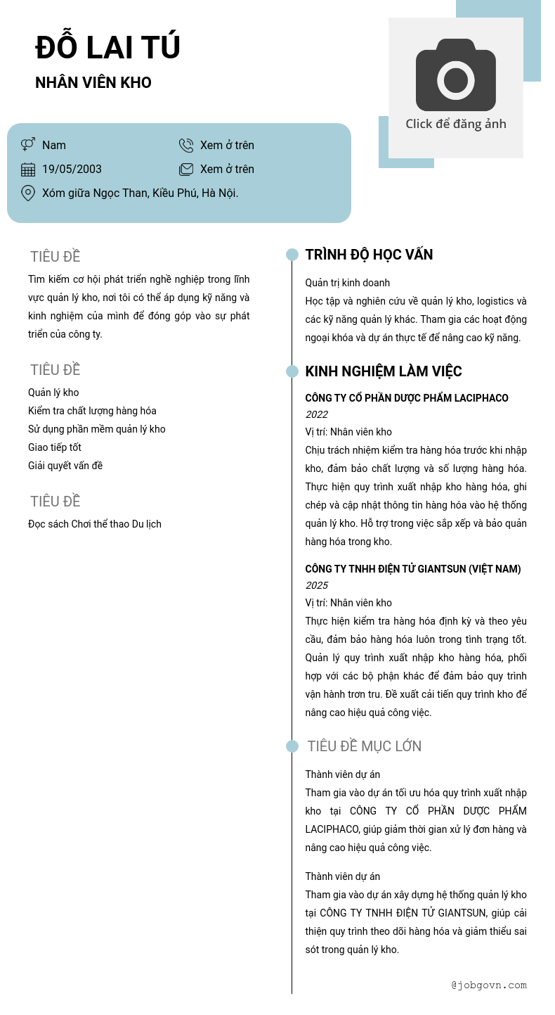 Chi tiết trong CV