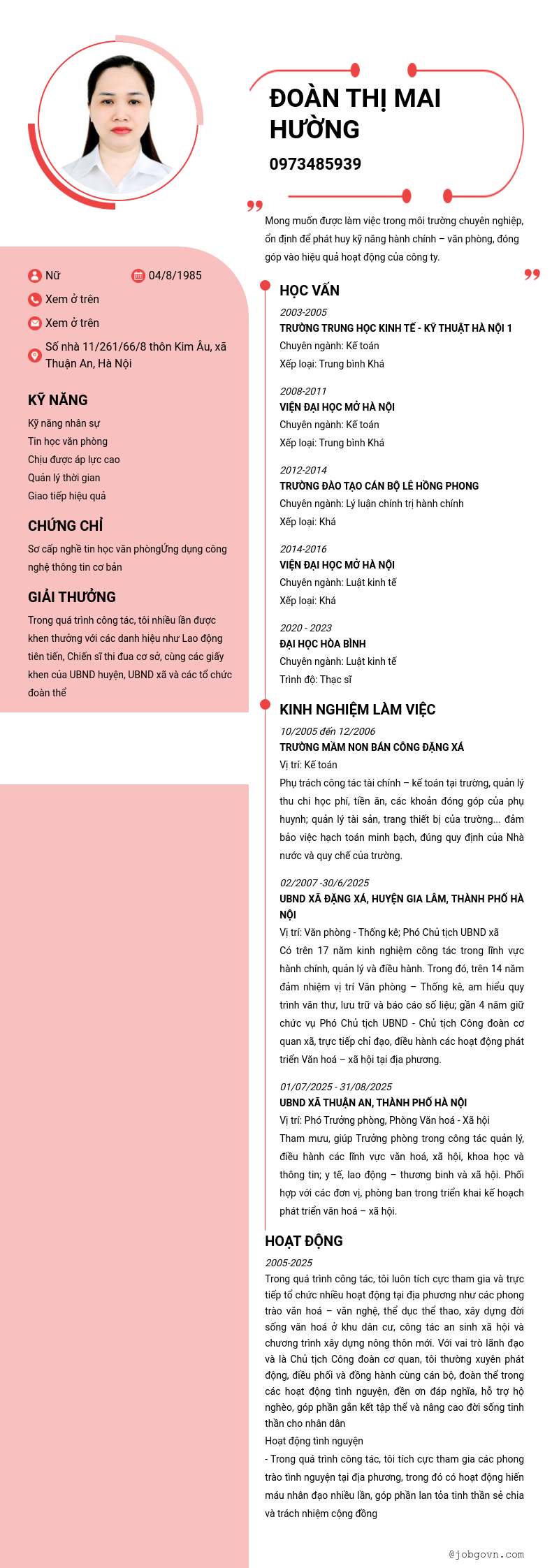 ĐOÀN THỊ MAI HƯỜNG (Đang tìm việc)
