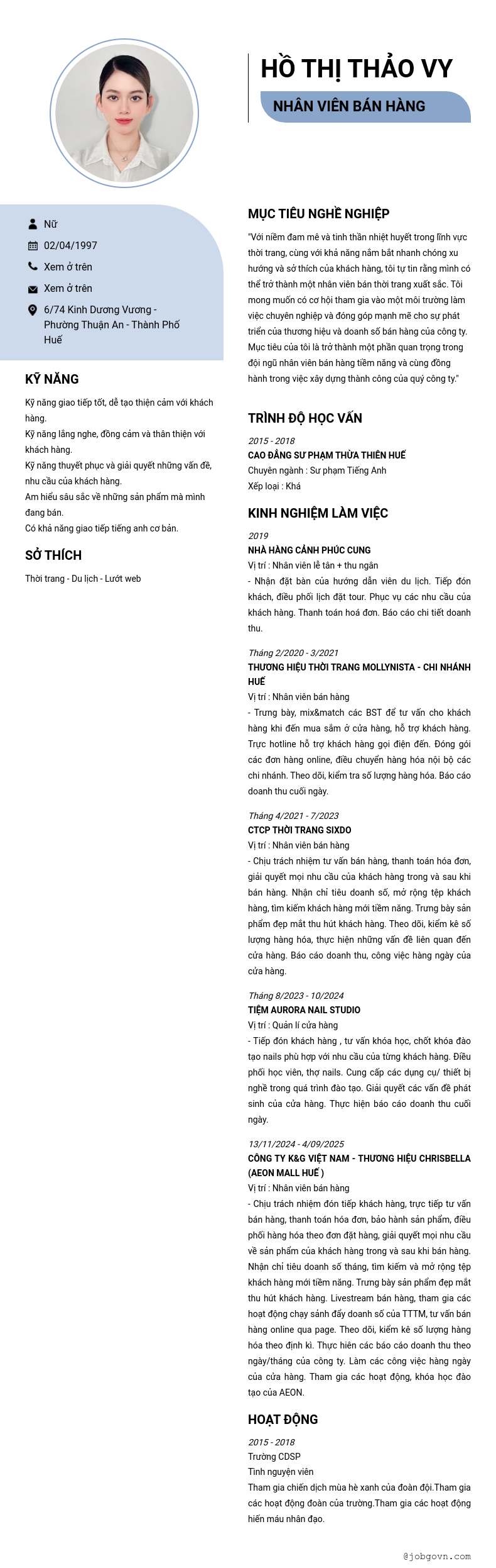 HỒ THỊ THẢO VY (Đang tìm việc)