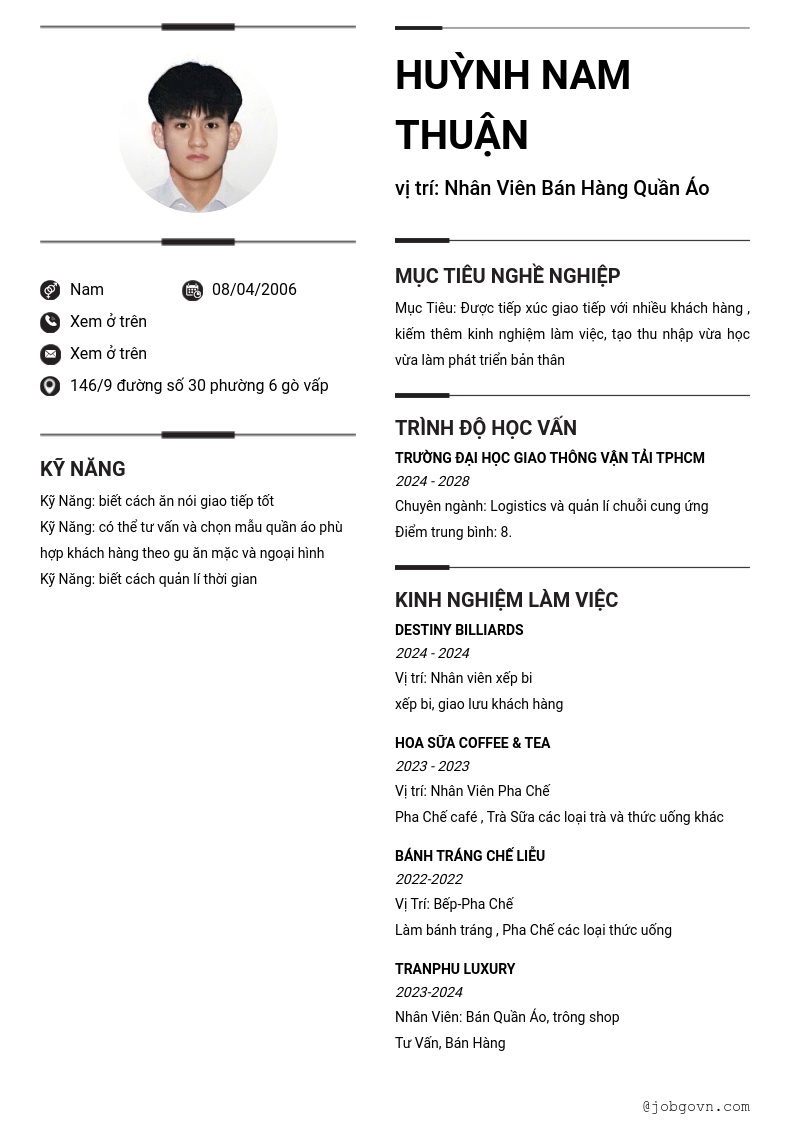 vị trí: Nhân Viên Bán Hàng Quần Áo