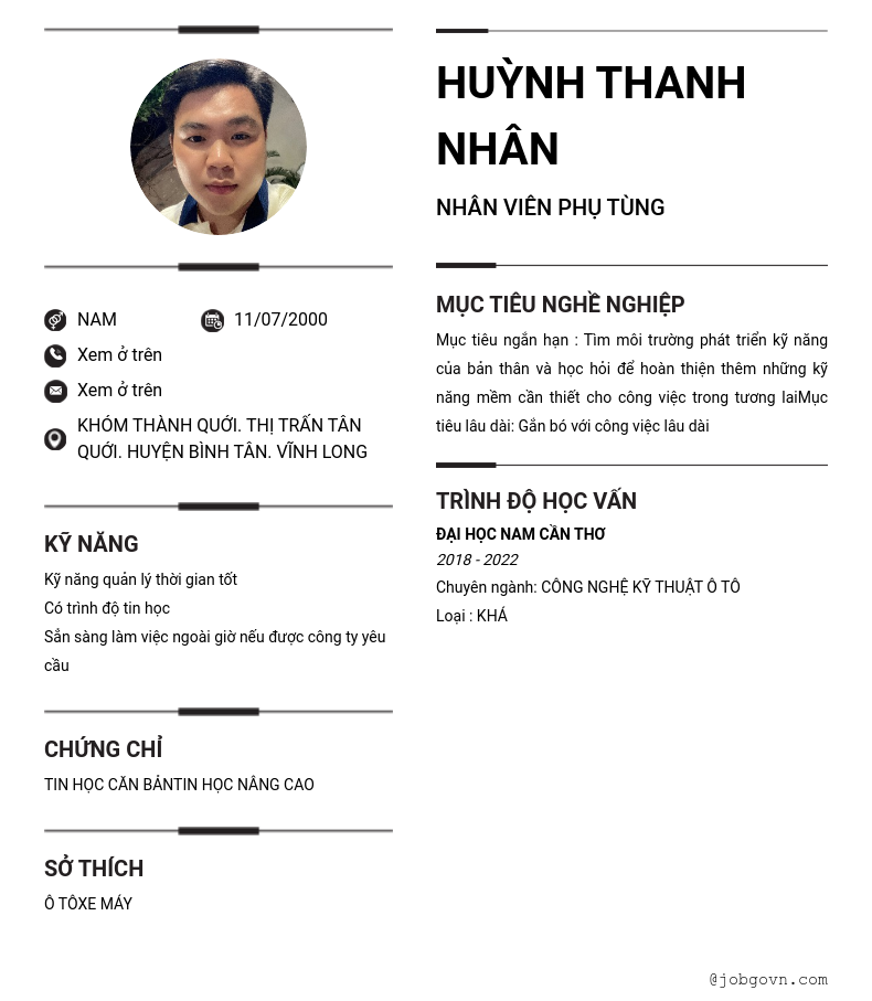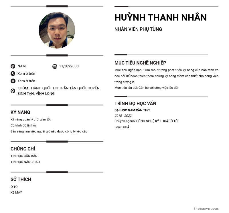 Chi tiết trong CV