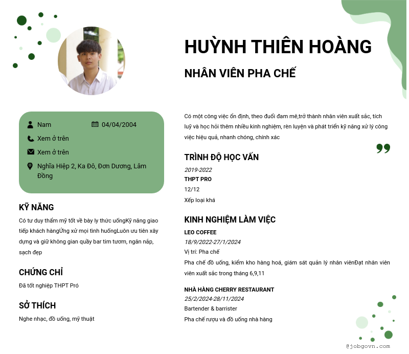 CV đã tạo