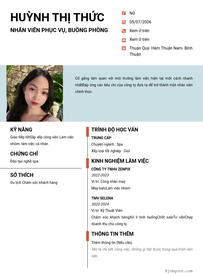 Chi tiết trong CV
