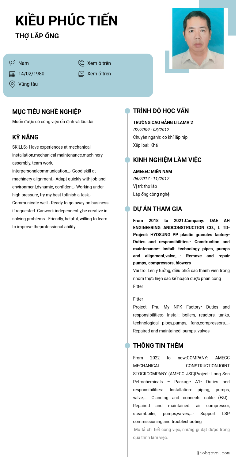 Chi tiết trong CV