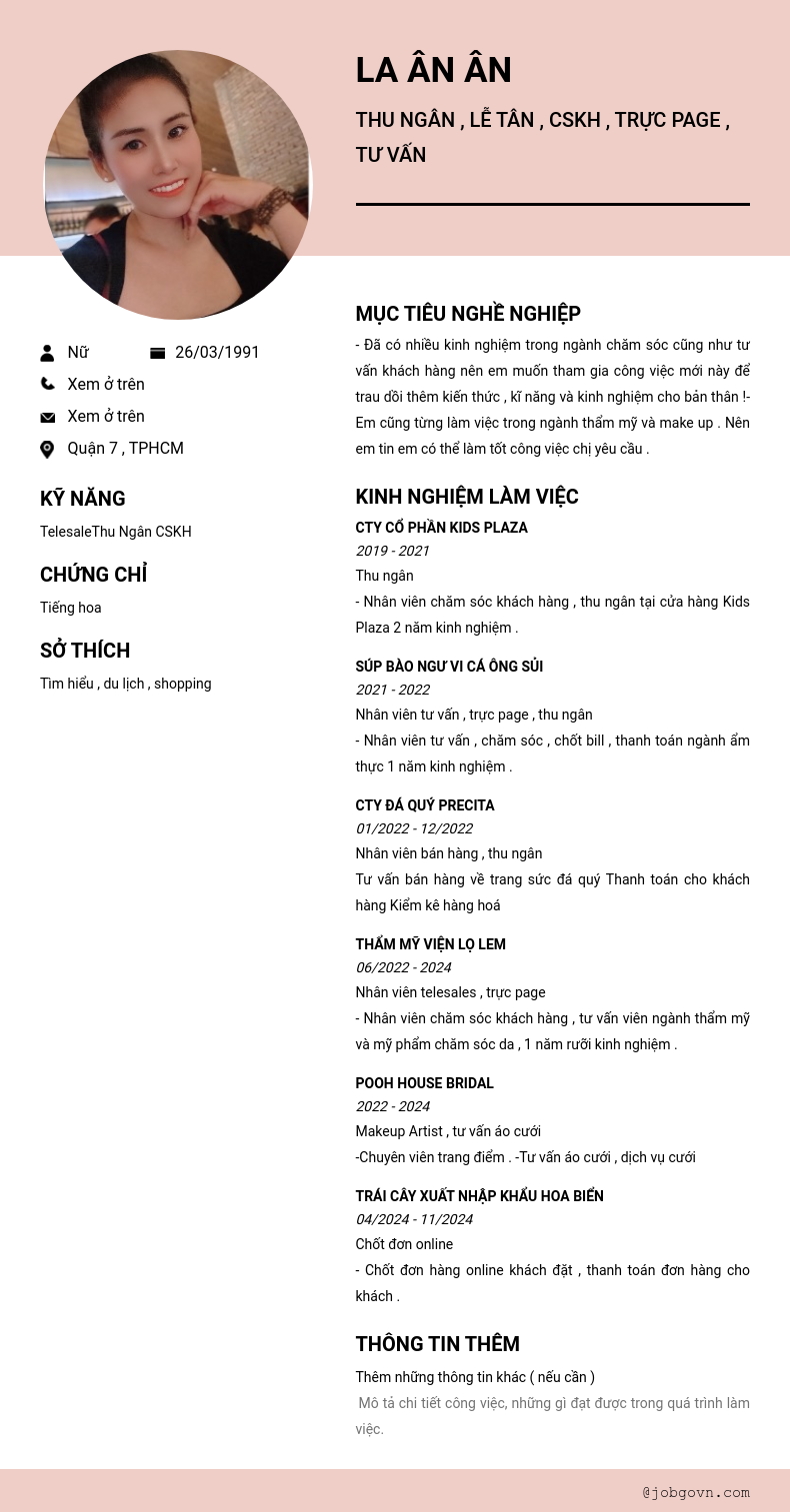Thu ngân , lễ tân , cskh , trực page , tư vấn