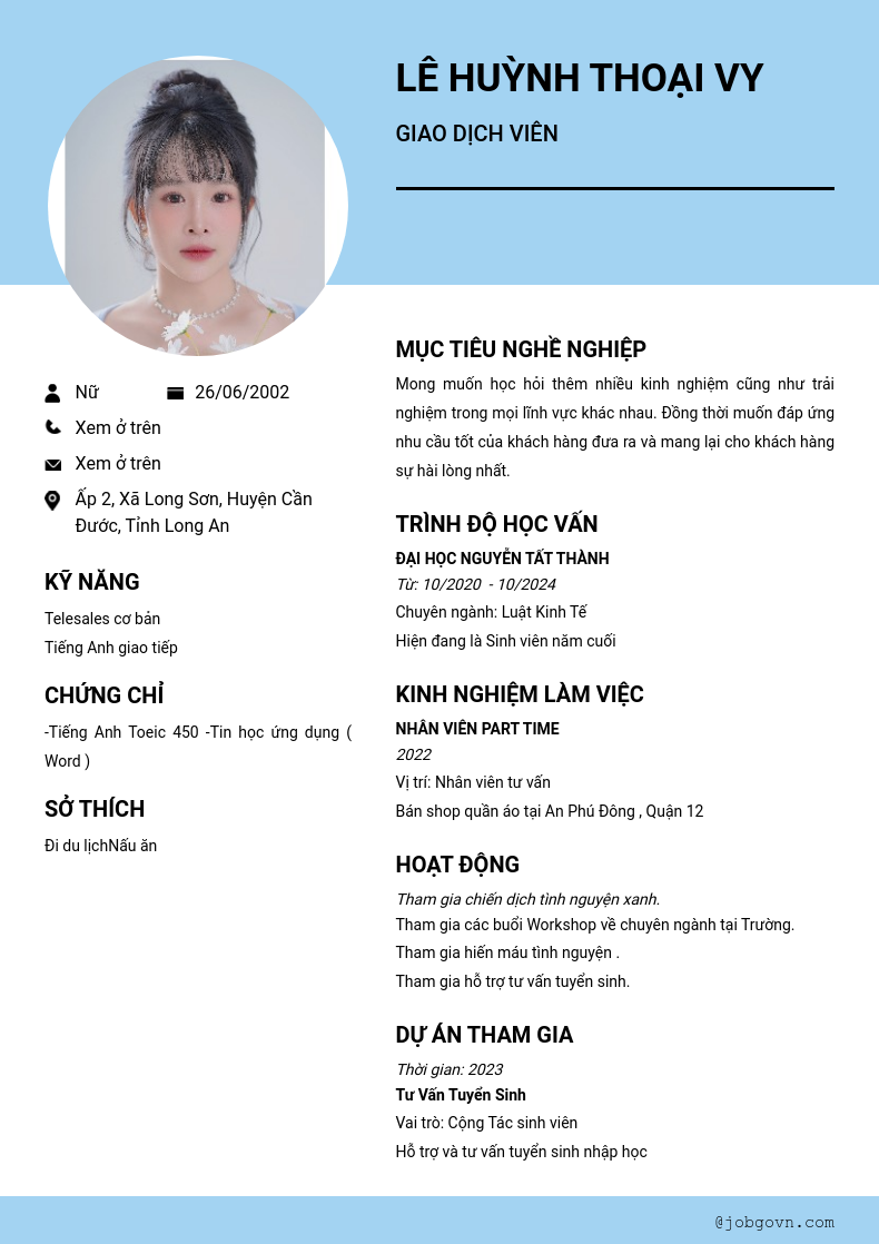 Chi tiết trong CV