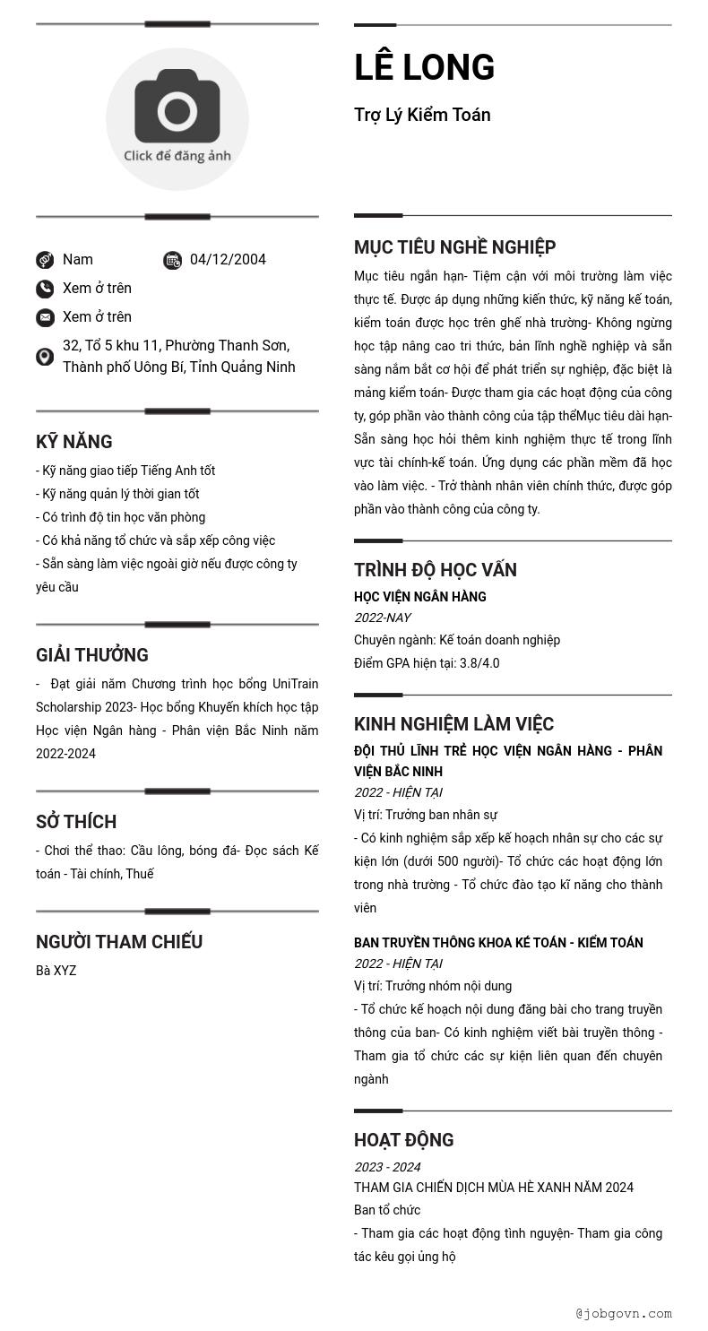 Mã ứng viên: 15408