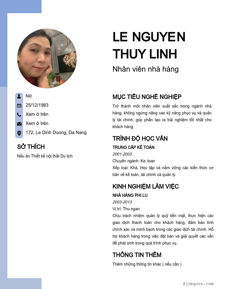 Le  Nguyen Thuy Linh (Đang tìm việc)
