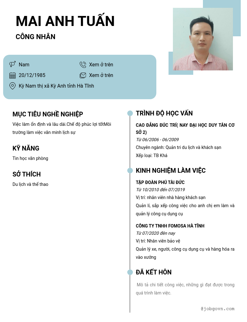 Chi tiết trong CV