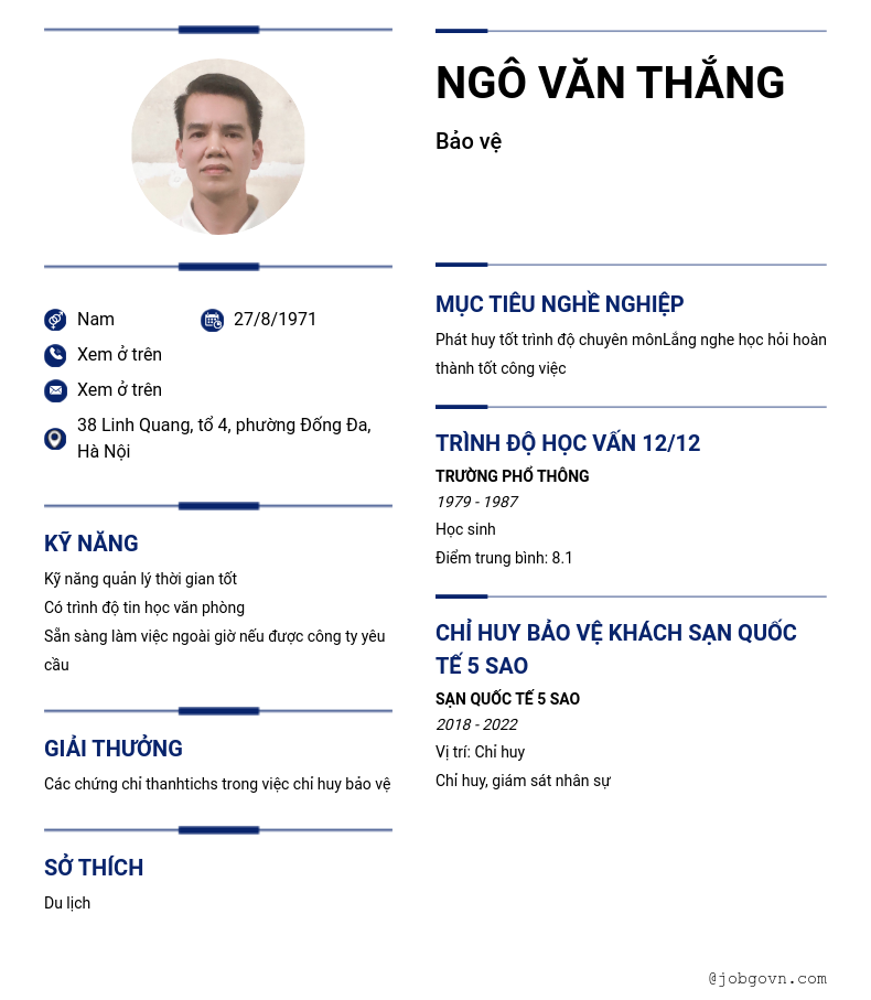 Chi tiết trong CV