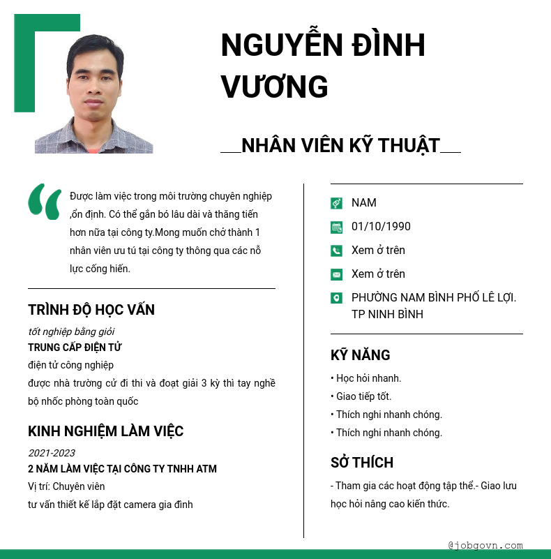 Chi tiết trong CV