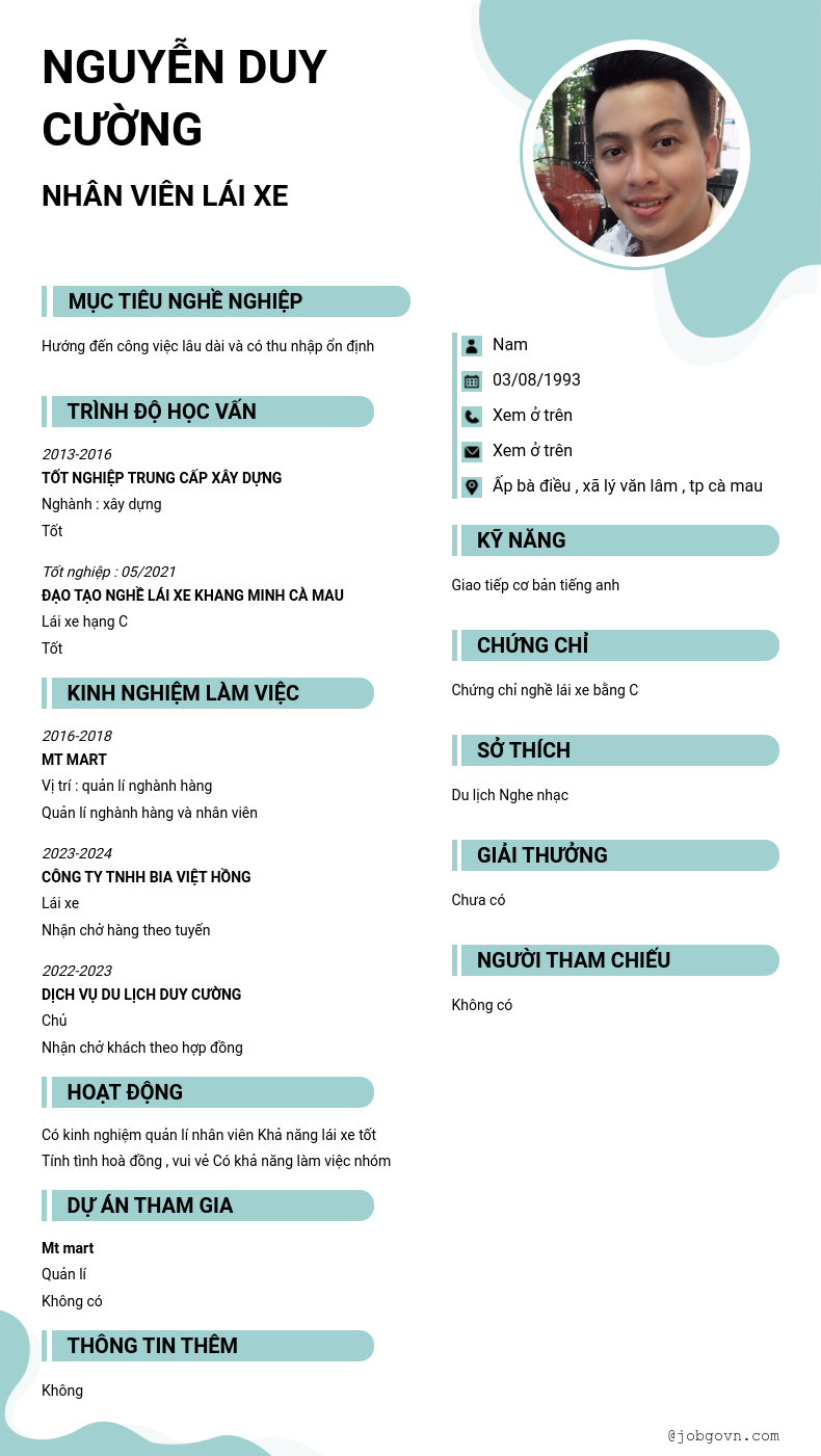 Chi tiết trong CV