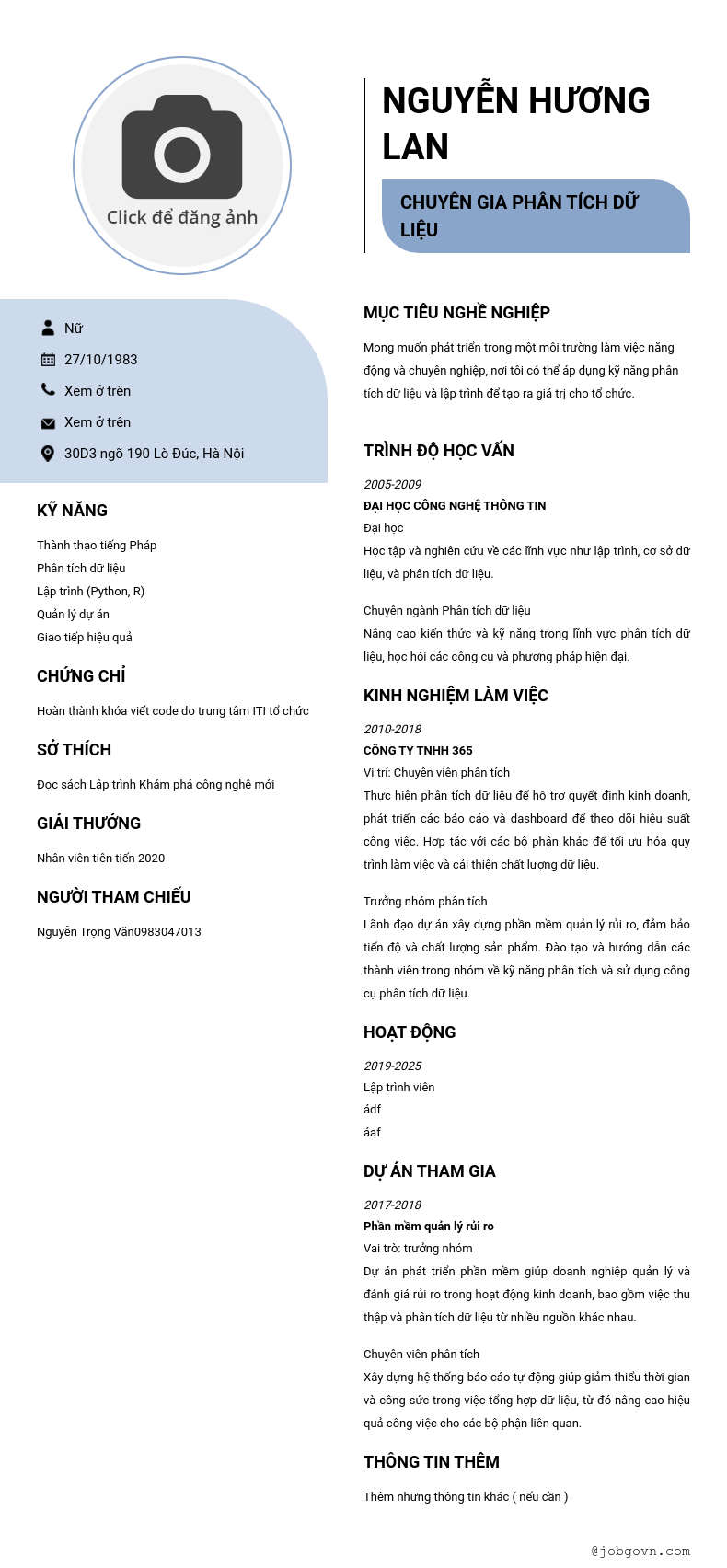 Chi tiết trong CV
