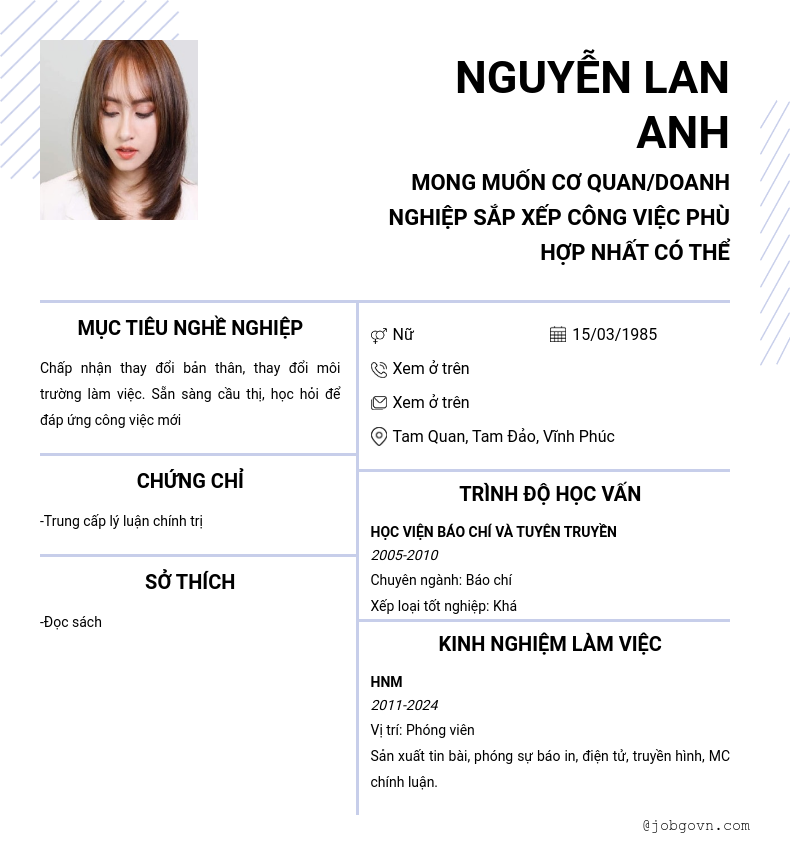 Chi tiết trong CV