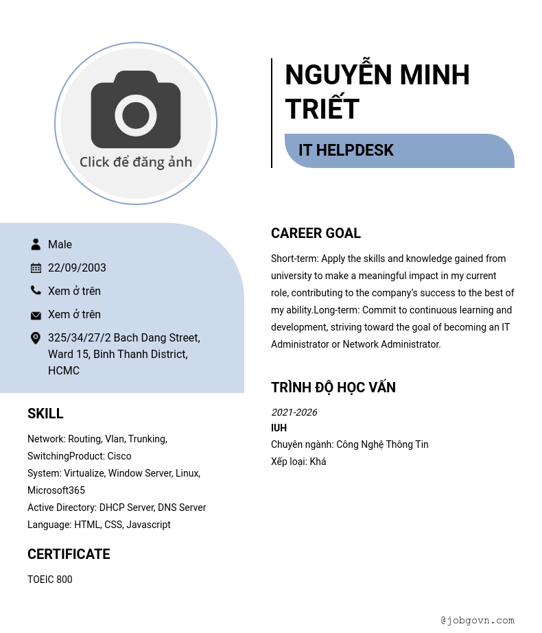 Chi tiết trong CV