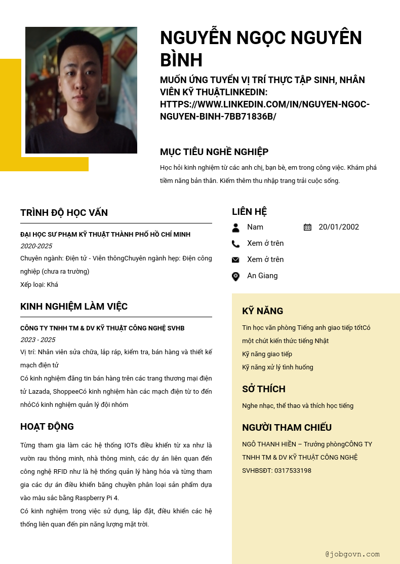 muốn ứng tuyển vị trí thực tập sinh, nhân viên kỹ thuậtlinkedin: https://www.linkedin.com/in/nguyen-ngoc-nguyen-binh-7bb71836b/