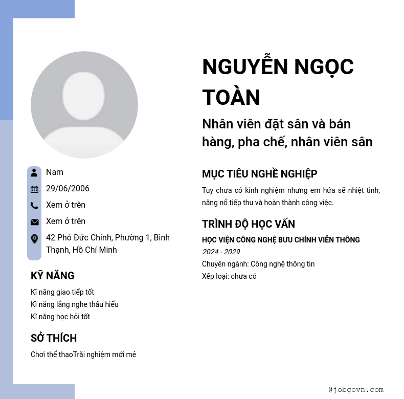 Nhân viên đặt sân và bán hàng, pha chế, nhân viên sân