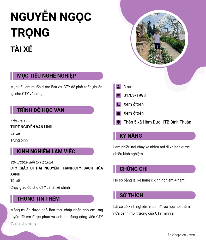 Chi tiết trong CV
