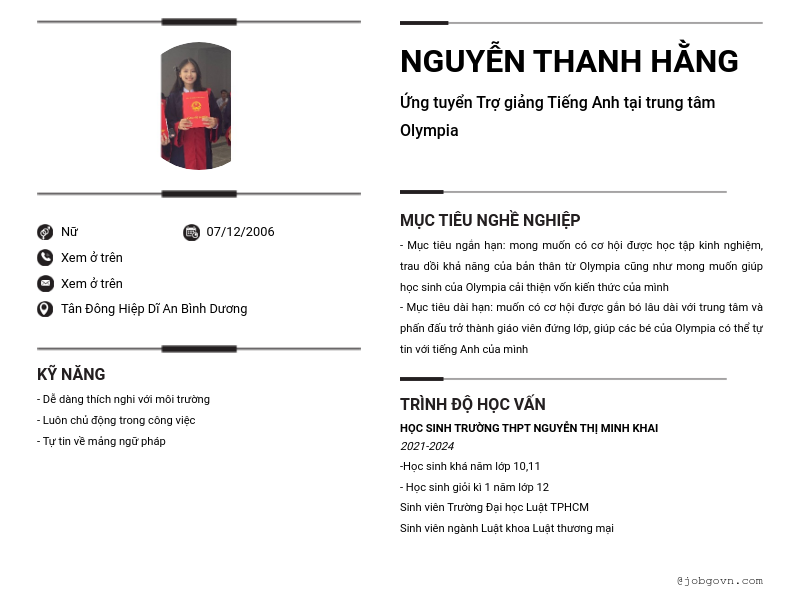 Ứng tuyển Trợ giảng Tiếng Anh tại trung tâm Olympia