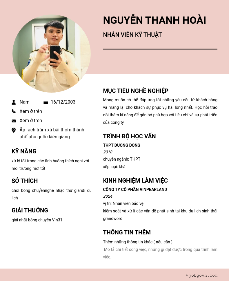Chi tiết trong CV