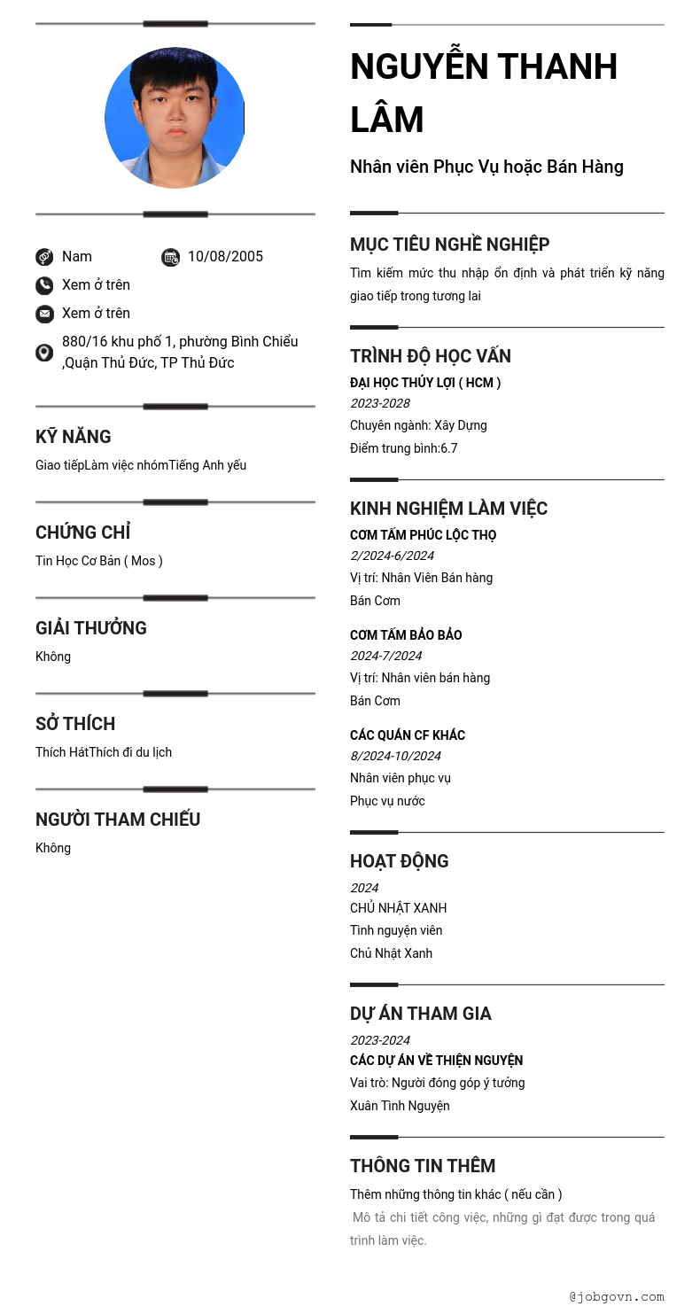 Nhân viên Phục Vụ hoặc Bán Hàng