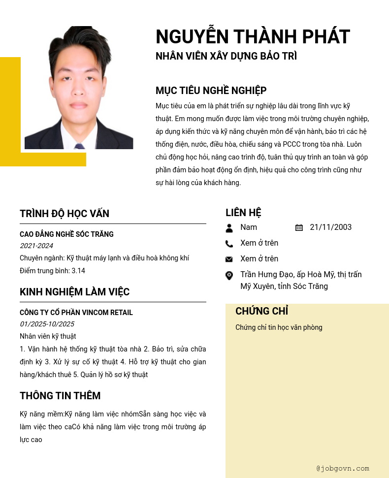 Chi tiết trong CV
