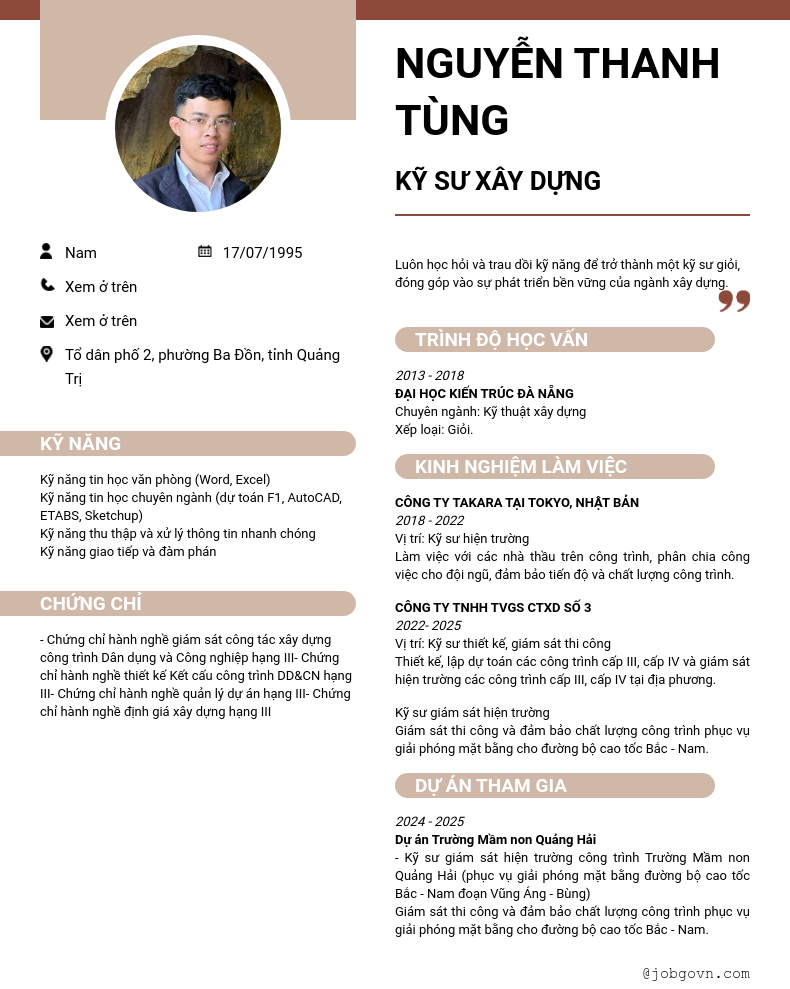 Chi tiết trong CV