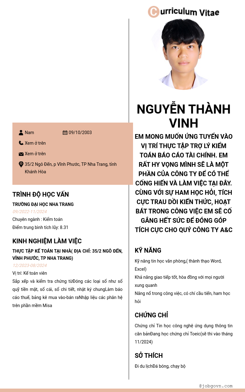 Chi tiết trong CV