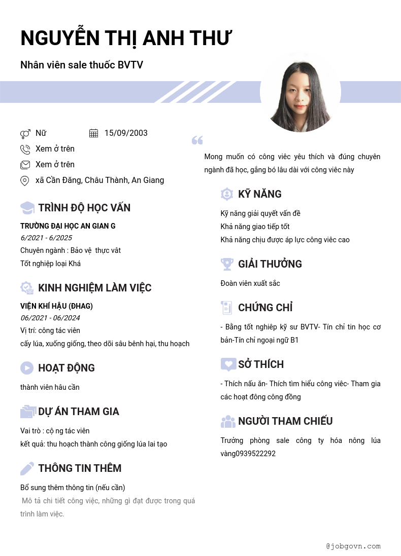 Chi tiết trong CV