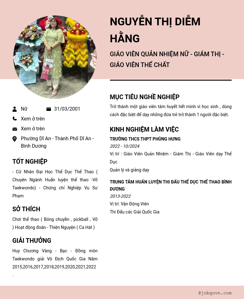 Giáo Viên Quản Nhiệm Nam - Giám Thị - Giáo Viên Thể Chất