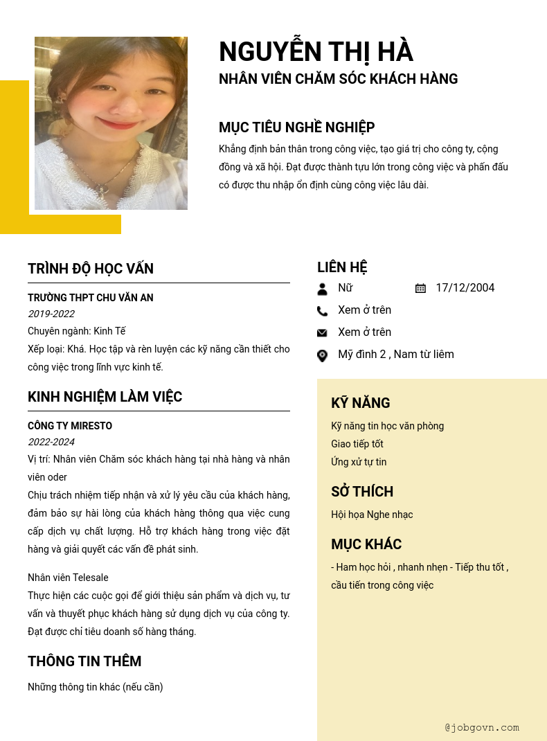 Nhân viên Chăm sóc khách hàng