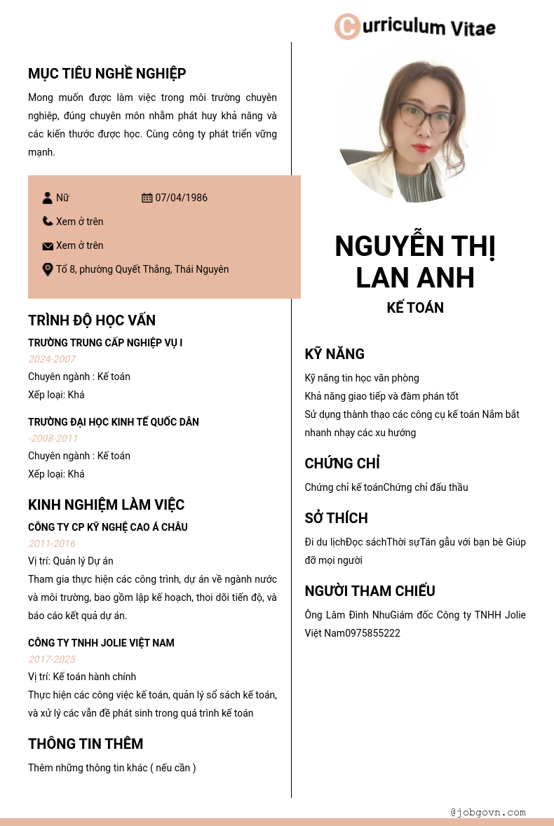 Chi tiết trong CV