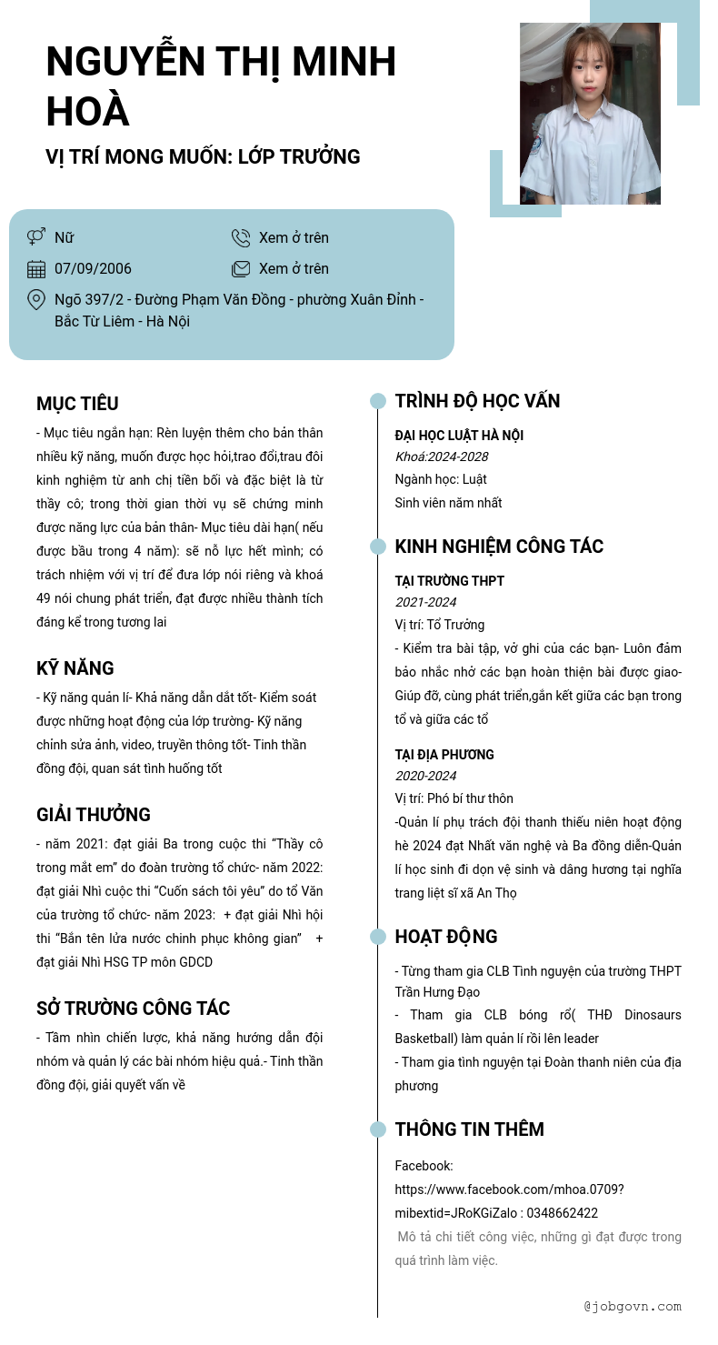 Chi tiết trong CV