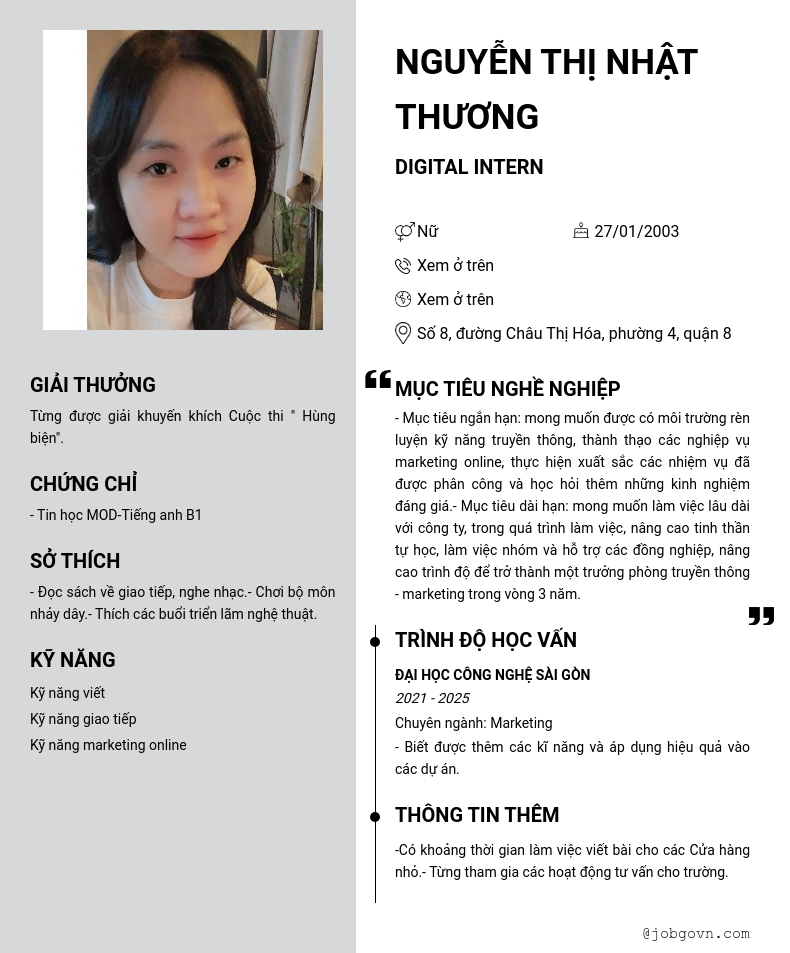 Chi tiết trong CV