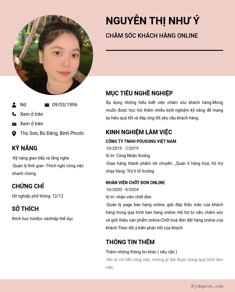 Chi tiết trong CV