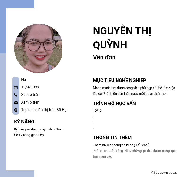 Chi tiết trong CV