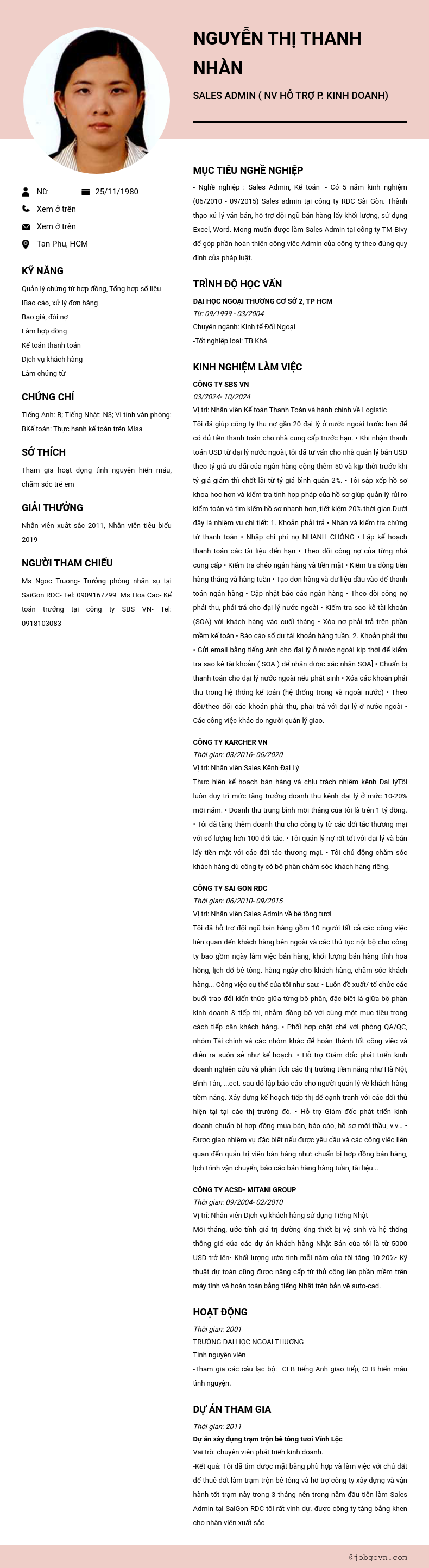 SALES ADMIN ( NV HỖ TRỢ P. KINH DOANH)