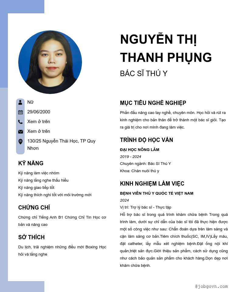 Chi tiết trong CV