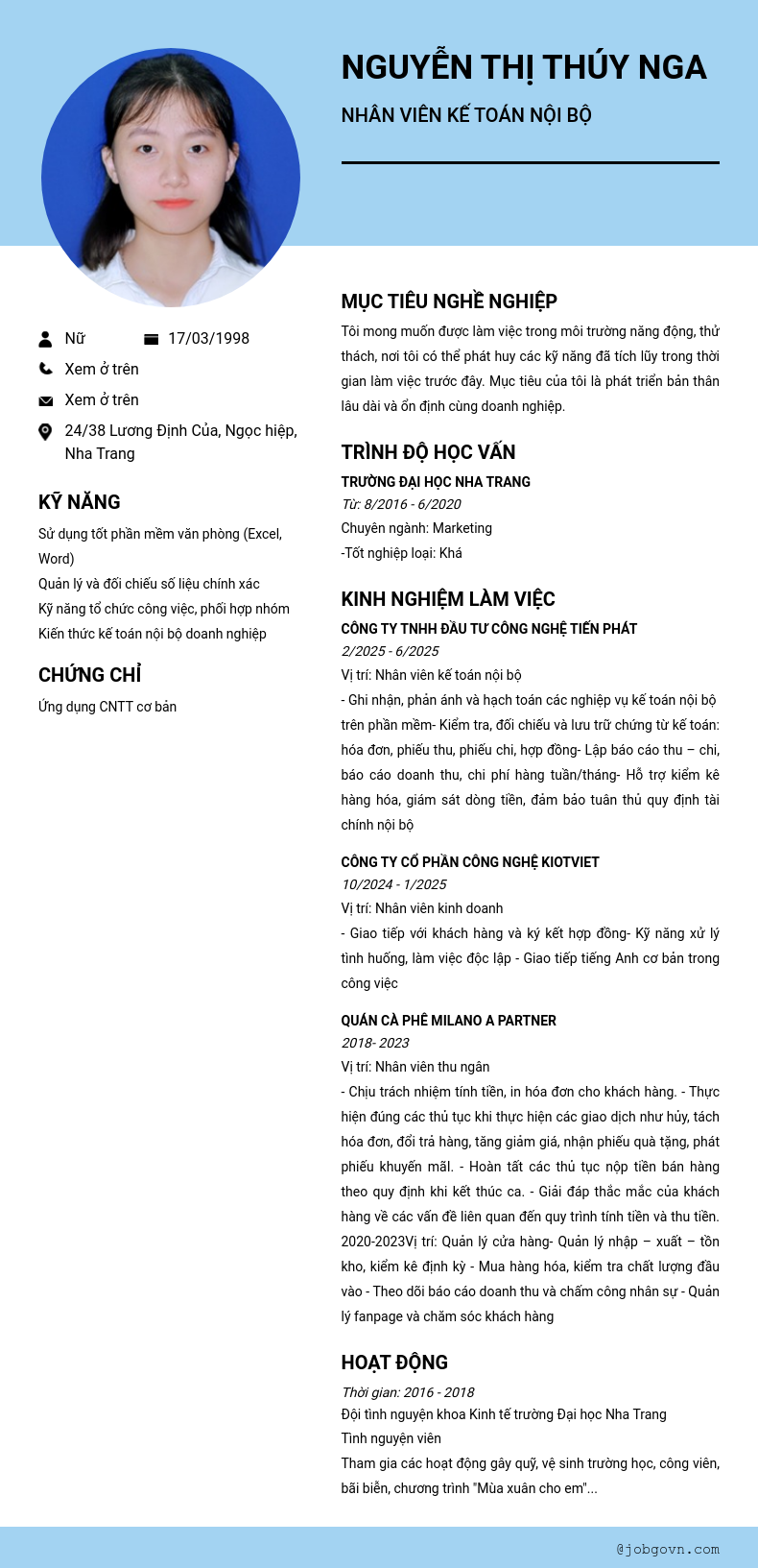Chi tiết trong CV